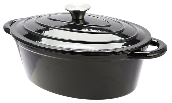 Ovaler Schmortopf aus schwarzem Gusseisen, 29 x 20 x 11 cm, 3,5 Liter