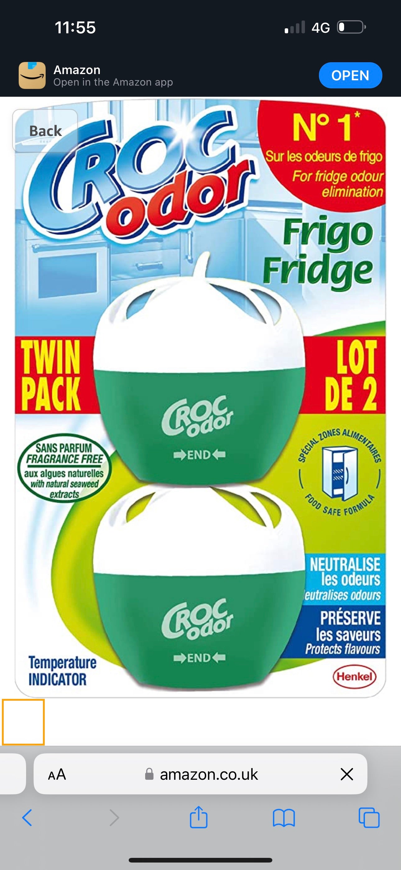Croc'Odor Kühlschrank-Deodorant, Doppelpackung, unparfümiert, lebensmittelechte Formel mit Temperaturanzeige – 2 x 33 g