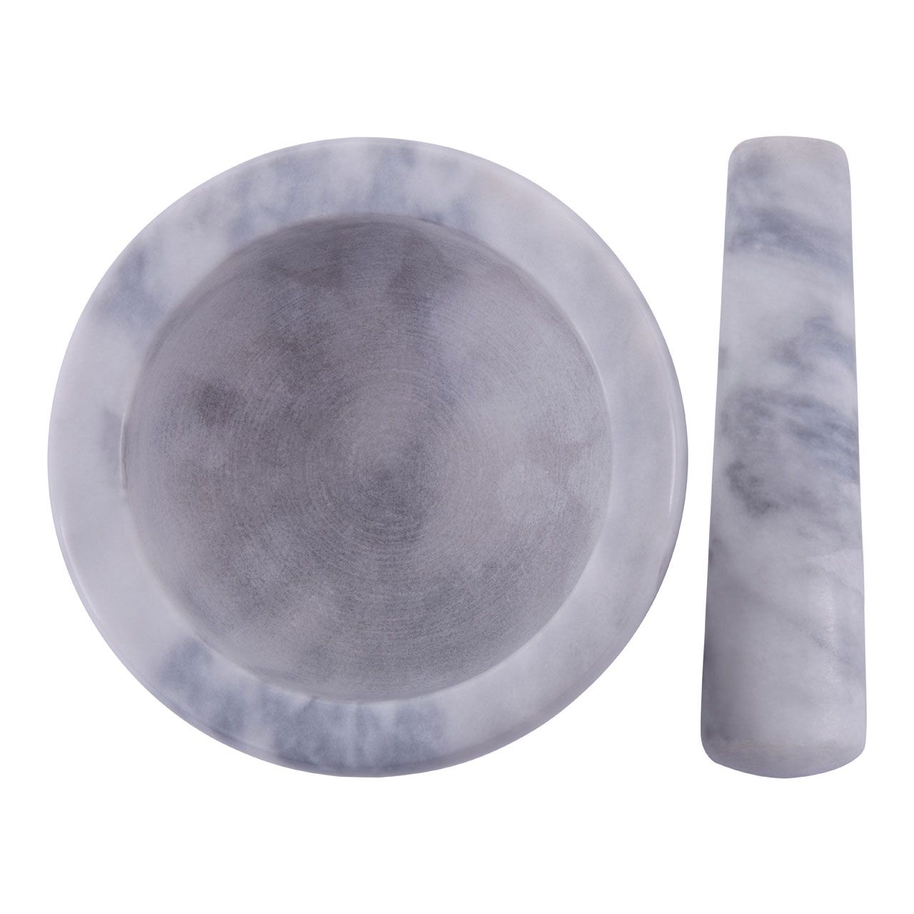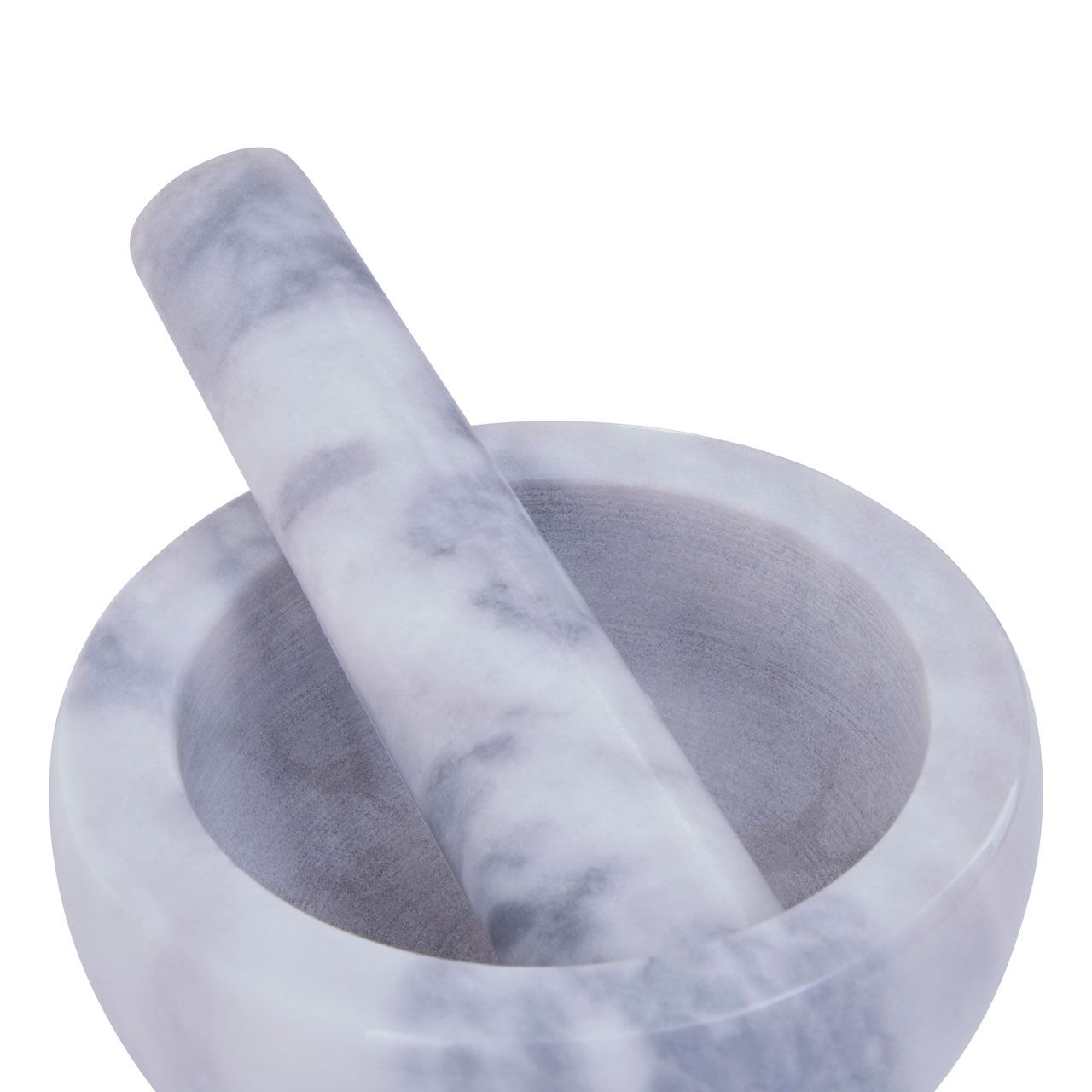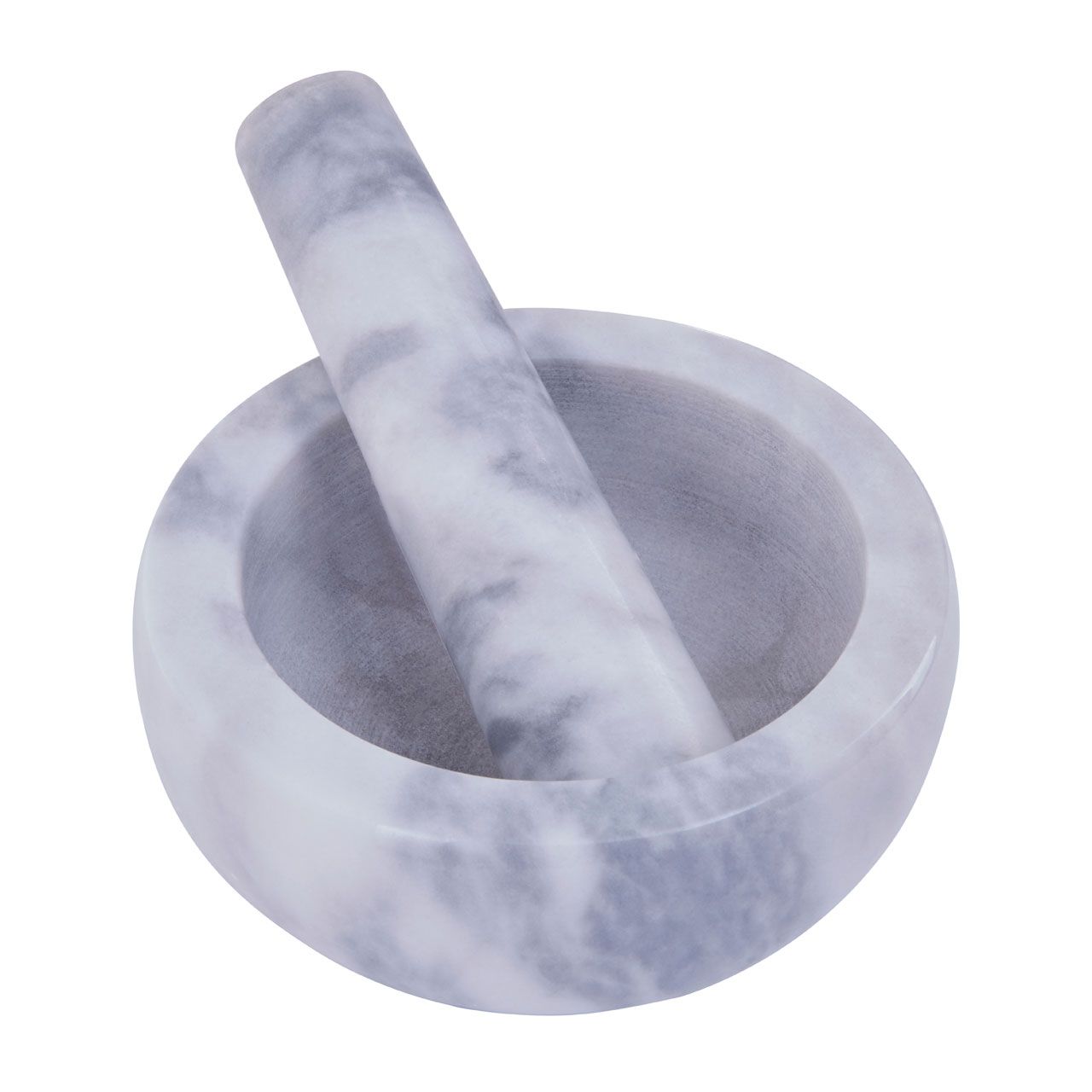 Dieser schalenförmige Mörser mit breitem Rand und Stößel verleiht der Küche traditionellen Charme. Gefertigt aus schwerem Marmor, ist der kunstvoll handgefertigte Mörser mit Stößel porenfrei und liegt beim Zubereiten von Speisen ergonomisch in der Hand.