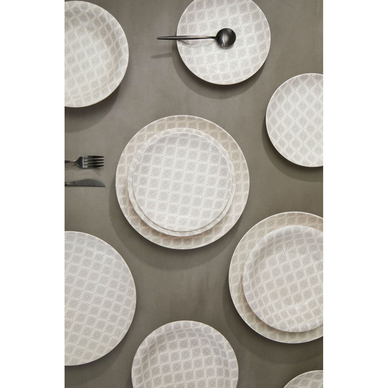 Maya 12-teiliges Speiseservice in Grau und Weiß