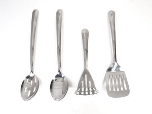 - Schaumlöffel, fester Löffel, Kartoffelstampfer und Pfannenwender